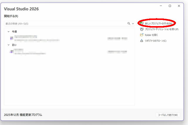 ↑Visual Studio 2026を立ち上げるとこんな画面がでます。