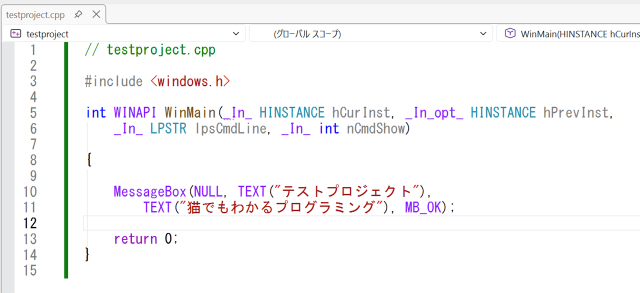 ↑いよいよ、ソースコードを打ち込みます。
