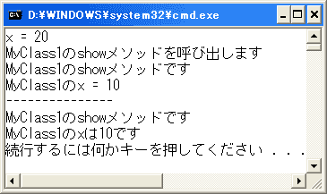 Console.WriteLine("MyClass1のshowメソッドを呼び出します");