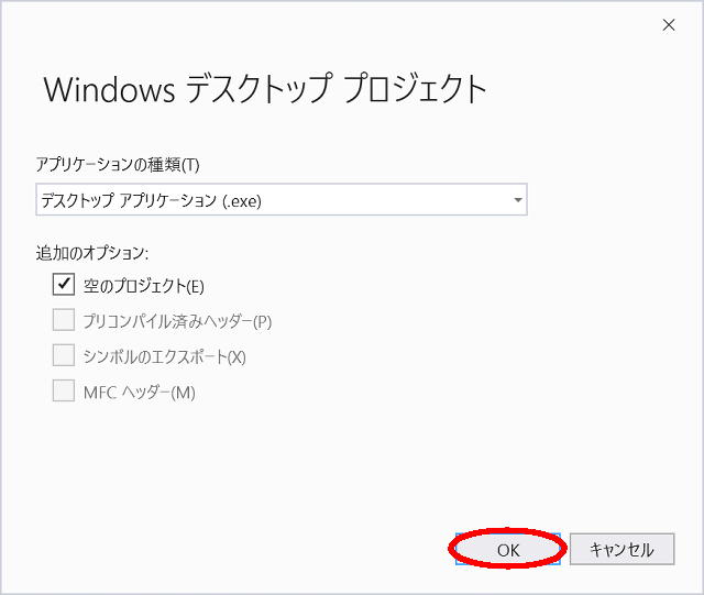 ↑追加のオプションは、「空のプロジェクト」にしておきます。